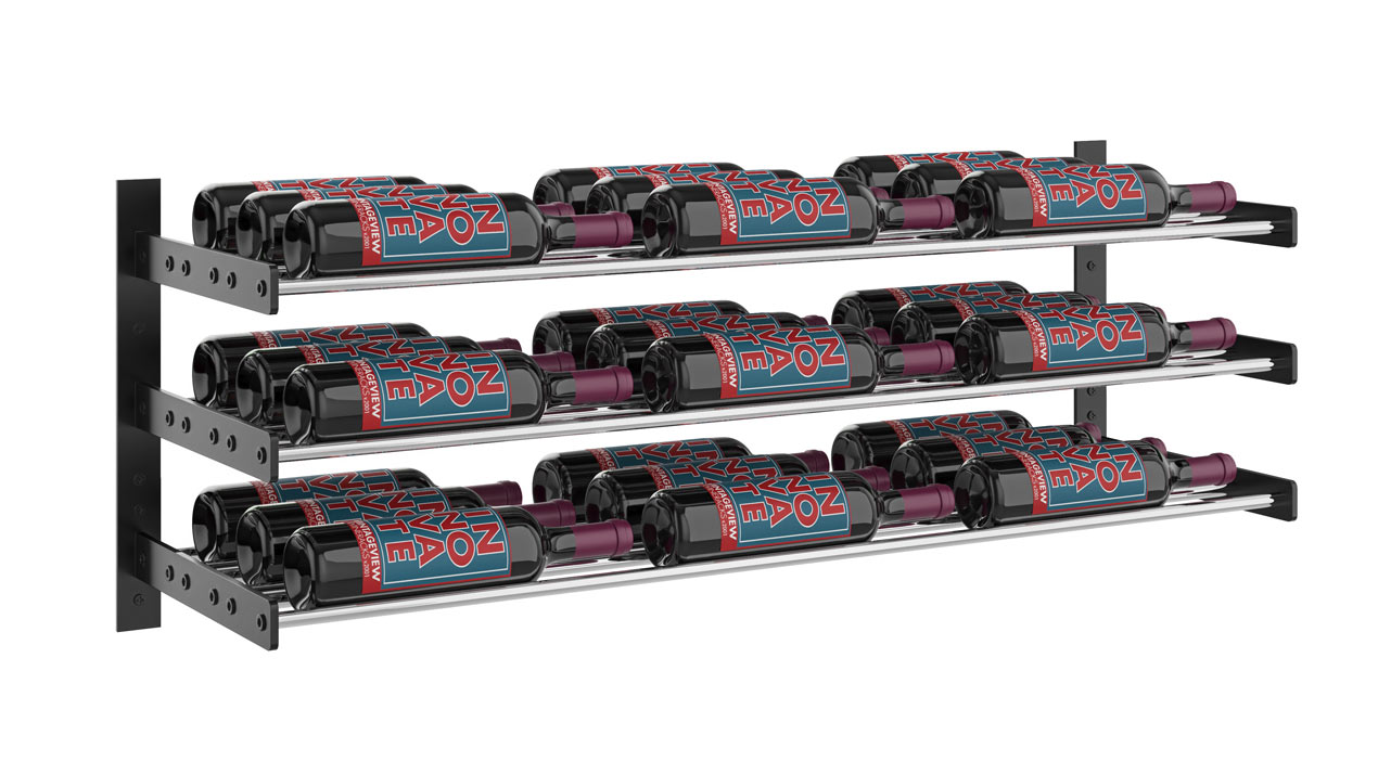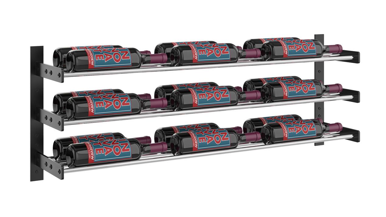 The CellarView II Series 15 is a three–bottle high (38,1 cm) and 1 to 3 bottle deep wine rack that stands alone as a great accent piece to bars and other small wine wall projects. It can also be lined up with other CellarView II heights to create any custom size display to fit your space.