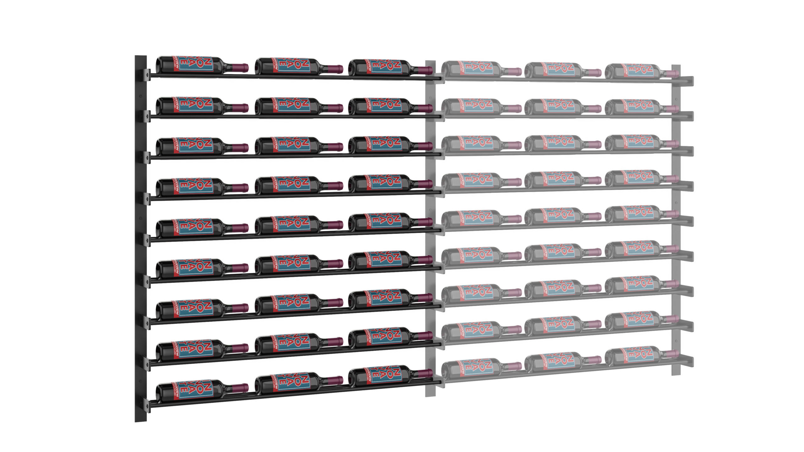The CellarView II Extension Kit 45 includes an additional steel wall-mounting strip and steel rods needed to extend the CellarView II columns to the left or right.