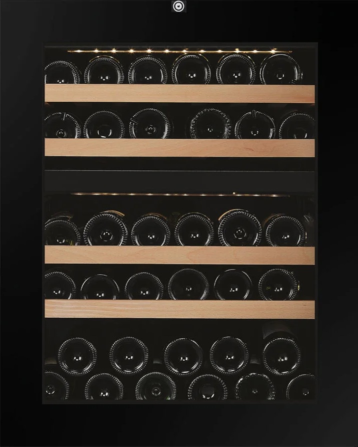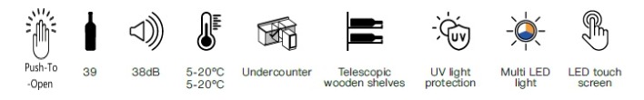 Porte, soignée et élégante, est entièrement vitrée, teintée et traitée anti-UV. Cette armoire à vin est équipée du système Touch-to-Open permettant d’ouvrir la porte grâce à une légère pression de la main.